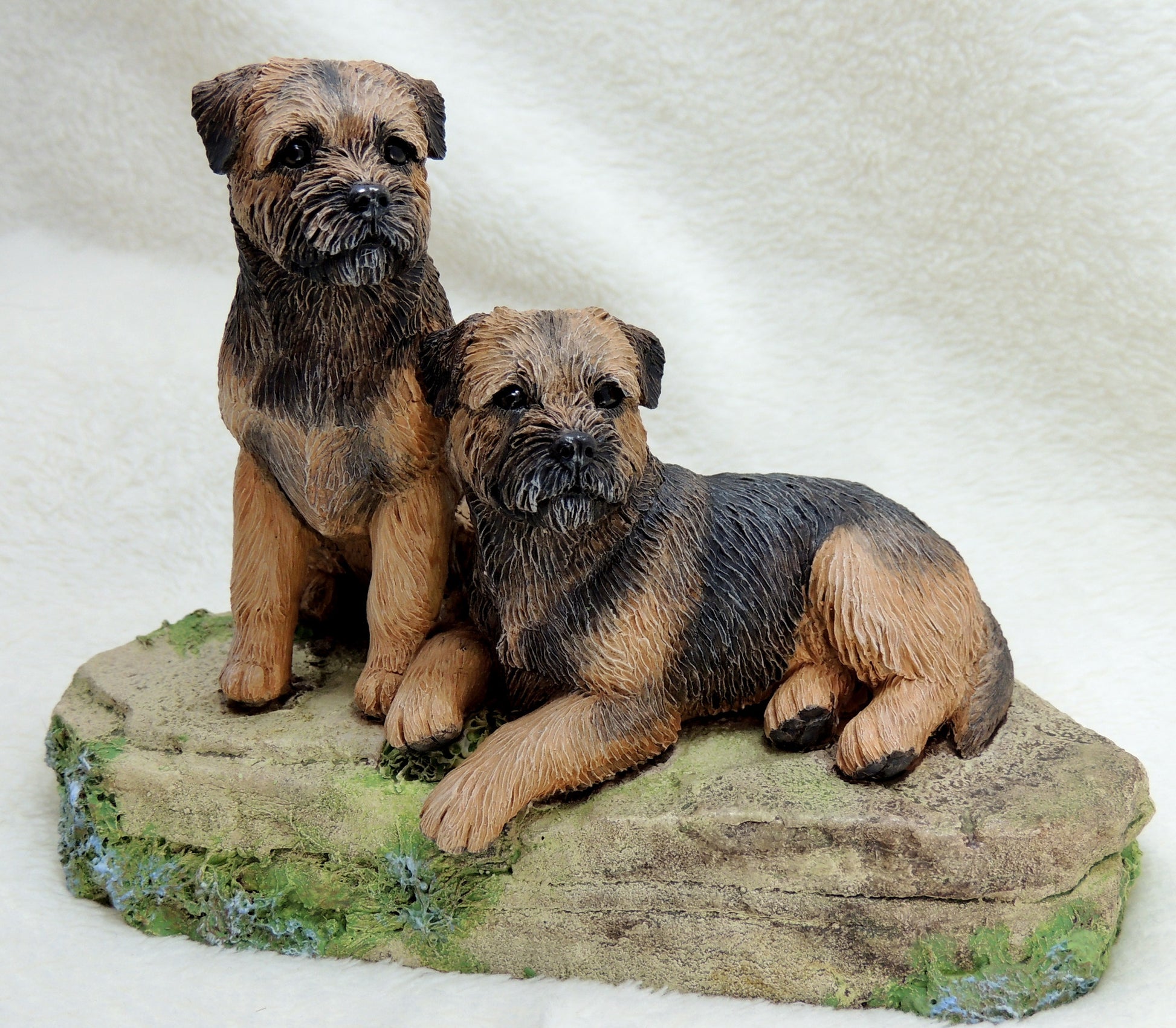 Painted with great care & attention to detail by the Sculptor, Taking hours of time and patience to paint each shade on their coats to make our Stunning limited edition Border Terriers as lifelike as possible.